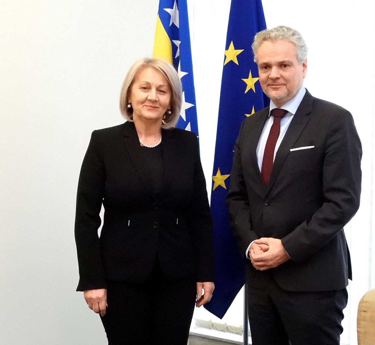Predsjedateljica Vijeća ministara Bosne i Hercegovine Borjana Krišto razgovarala je u Sarajevu sa šefom Delegacije Europske unije u BiH i posebnim predstavnikom EU u BiH Johannom Sattlerom i veleposlanicima zemalja članica Europske unije u BiH o reformskim procesima i europskim integracijama Bosne i Hercegovine.