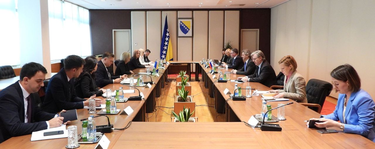Predsjedateljica Vijeća ministara BiH Borjana Krišto ugostila je u Sarajevu predsjednika Vlade Republike Slovenije Roberta Goloba, koji je doputovao u službenu posjetu Bosni i Hercegovini.
