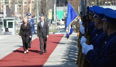 Premijera Goloba je na platou ispred zgrade institucija BiH, uz vojne počasti, dočekala predsjedateljica Krišto.