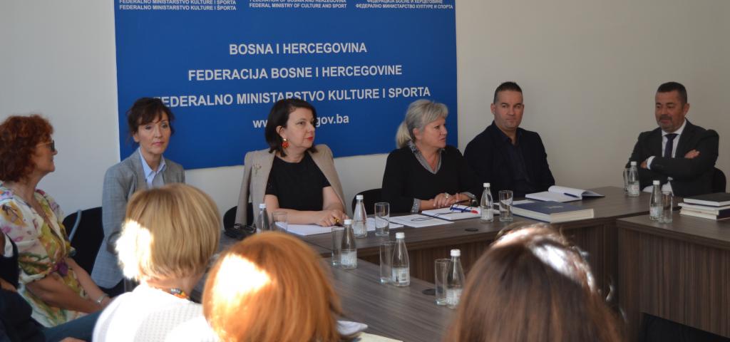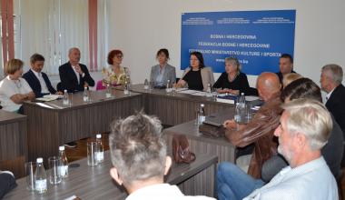 Federalno ministarstvo kulture i športa organiziralo je prvi sastanak predstavnika institucija kulture od značaja za Federaciju Bosne i Hercegovine i Bosnu i Hercegovinu. Sastanku, prvom ove vrste u Ministarstvu, nazočili su: Strajo Krsmanović, ravnatelj Umjetničke galerije Bosne i Hercegovine, Ismet Ovčina, ravnatelj Nacionalne i univerzitetske biblioteke Bosne i Hercegovine, Sakib Pleh, ravnatelj Biblioteke za slijepa i slabovidna lica u Bosni i Hercegovini, Devleta Filipović, v.d. ravnateljice Kinoteke Bosne i Hercegovine, Šejla Šehabović, ravnateljica JU Muzeja književnosti i pozorišne umjetnosti Bosne i Hercegovine, Elma Hodžić, djelatnica Historijskog muzeja Bosne i Hercegovine, Mirsad Sijarić, ravnatelj Zemaljskog muzeja Bosne i Hercegovine, Emir Spahić, ravnatelj Narodnog pozorišta u Mostaru, Ivan Vukoja, ravnatelj Hrvatskog narodnog kazališta u Mostaru, Gordana Hrenovica, pomoćnica ravnatelja Narodnog pozorišta u Sarajevu, Elvir Škiljo, zamjenik ravnatelja Bosanskog narodnog pozorišta Zenica, Mirza Ćatibušić, ravnatelj Bosanskog narodnog pozorišta Tuzla, Ivo Čolak, prorektor Sveučilišta u Mostaru ispred Galerije SUM-a, Dražena Džeko, ravnateljica Franjevačkog muzeja i galerije Gorica Livno, Snježana Zovko, ravnateljica Simfonijskog orkestra Mostar i Vedran Tuce, ravnatelj Sarajevske filharmonije. Značajan aspekt ovog sastanka je okupljanje institucija kulture čije sjedište je i u drugim gradovima Federacije BiH.
