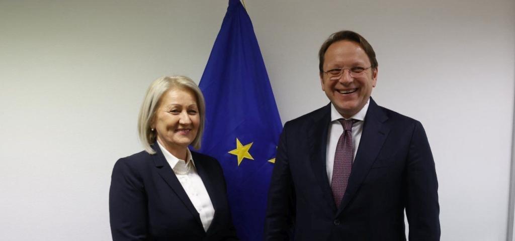 Predsjedateljica Vijeća ministara BiH Borjana Krišto razgovarala je danas u Bruxellesu s europskim povjerenikom za proširenje i susjedstvo Olivérom Várhelyijem o europskom putu Bosne i Hercegovine.
