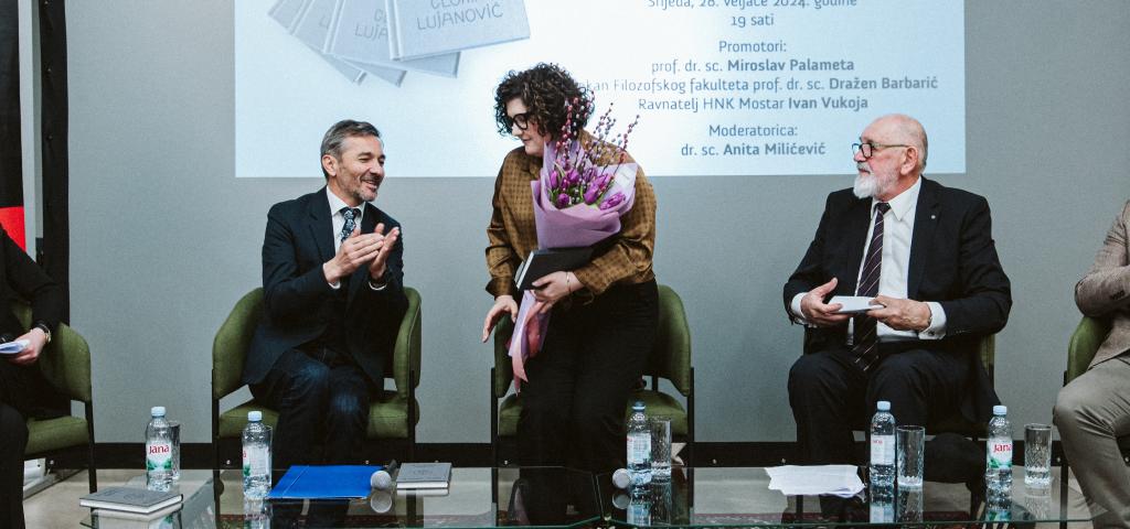 Osim autorice, knjigu je predstavljao i prof. dr. sc. Miroslav Palameta, dekan Filozofskog fakulteta prof. dr. sc. Dražen Barbarić i ravnatelj HNK Mostar Ivan Vukoja, a moderatorica je dr. sc Anita Milićević.