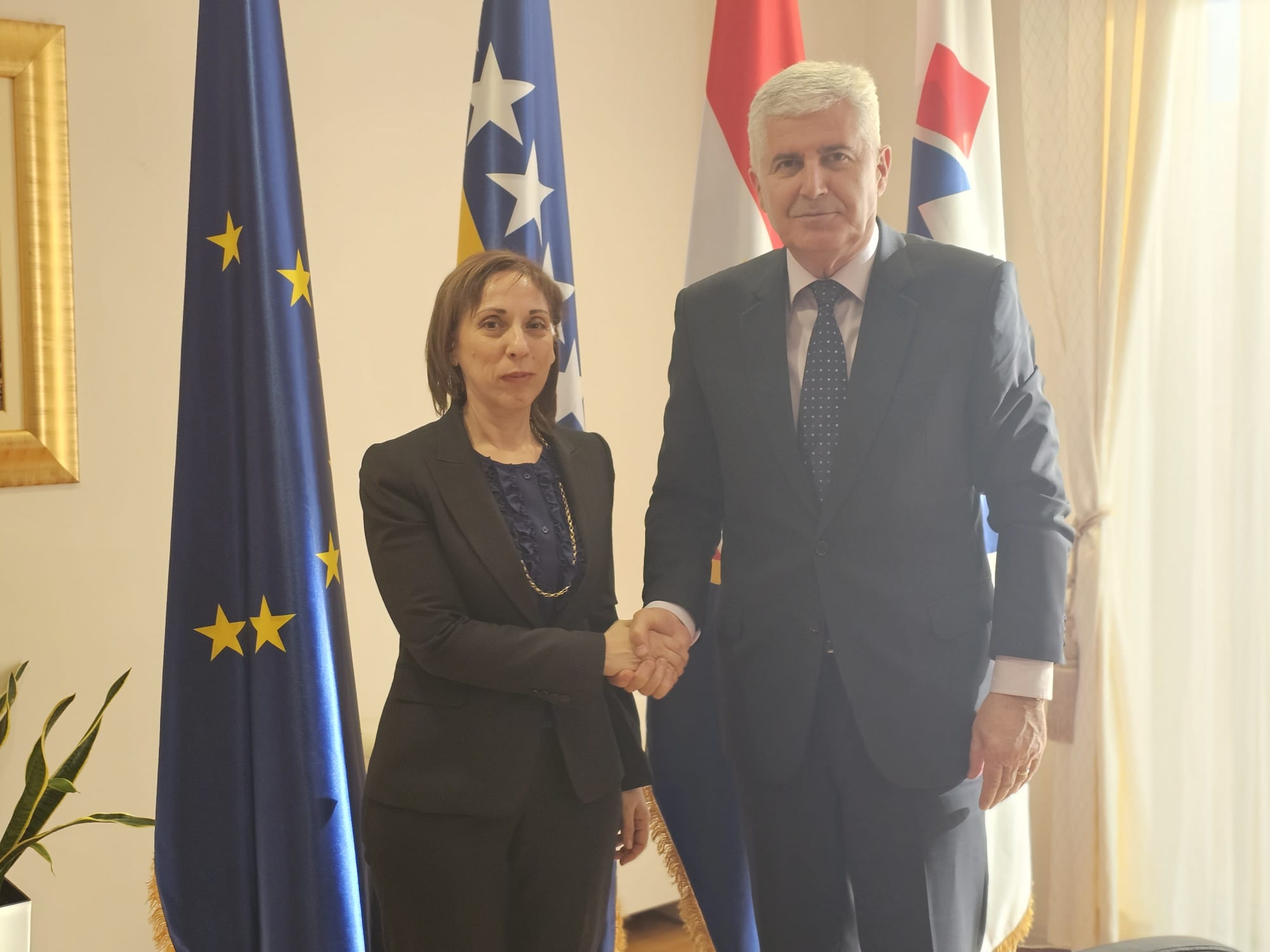 Predsjednik Čović tom je prilikom istaknuo aktualnu situaciju, naglašavajući potpunu i neupitnu opredijeljenost legitimnih hrvatskih dužnosnika u postizanju daljnjih iskoraka na europskom putu, ističući pri tome važnost žurnih izmjena i dopuna Izbornog zakona BiH.