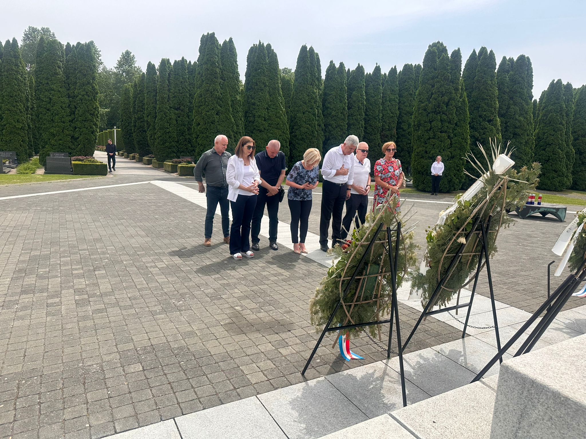 Tijekom posjeta, predsjednik Čović i zamjenica predsjednika Krišto položili su cvijeće i zapalili svijeće kod spomen-obilježja na Memorijalnom groblju žrtava iz Domovinskog rata.