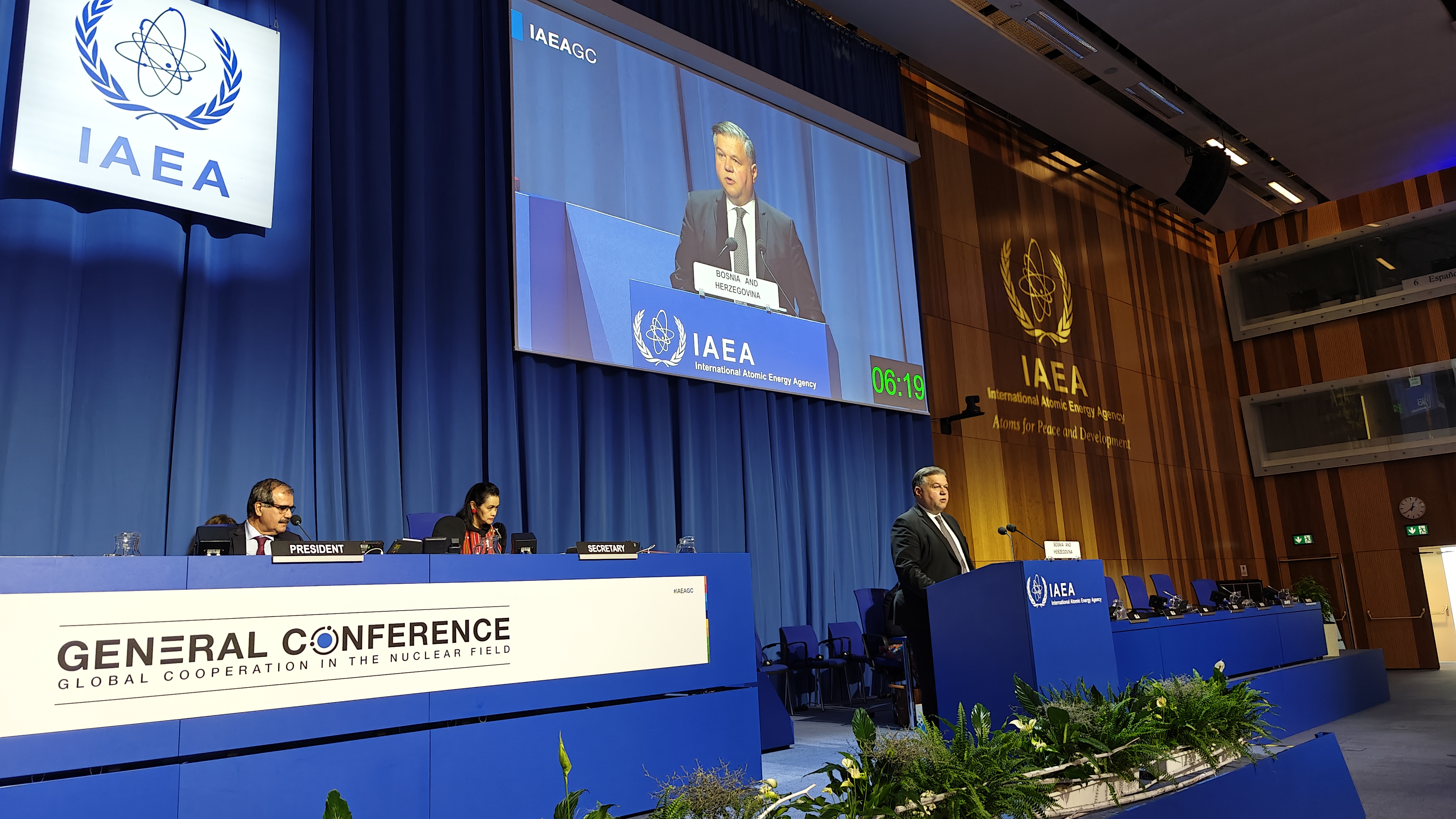 U svom obraćanju zamjenik ministra Brkić naglasio je da je Bosna i Hercegovina iznimno ponosna na postignuća ostvarena kroz suradnju s Međunarodnom agencijom za atomsku energiju, posebice kada je riječ o projektima IAEA financiranim od strane Fonda za tehničku suradnju (TCF), uključujući donacije opreme, prijenos znanja i stjecanje stručnosti. Dodao je da je zahvaljujući potpori IAEA Bosna i Hercegovina uspostavila moderno regulatorno tijelo, jedinstveno u našoj zemlji, posvećeno osiguravanju radijacijske i nuklearne sigurnosti koje djeluje već skoro 15 godina. Istaknuo je da će se ovo regulatorno tijelo u bliskoj budućnosti usredotočiti na provedbu preporuka iz misija IAEA ORPAS i IRRS te rješavanju izazova povezanih s Konvencijom o nuklearnoj sigurnosti i Zajedničkom konvencijom o sigurnosti zbirnjavanja istrošenim gorivom i sigurnosti zbrinjavanja radioaktivnim otpadom. Ocijenio je važnim da sve zemlje, bilo nuklearne ili ne, ratificiraju Konvenciju o fizičkoj zaštiti nuklearnog materijala i njezine izmjene i dopune. Poručio je da uz ratifikaciju ovih međunarodnih instrumenata, Bosna i Hercegovina provodi svoj Integrirani plan održivosti nuklearne sigurnosti kako bi poboljšala svoj režim nuklearne sigurnosti i doprinijela globalnoj nuklearnoj sigurnosti. Naglasio je da je Bosna i Hercegovina opredijeljena da bude vrijedna članica IAEA-e implementirajući ključne međunarodne ugovore, standarde i preporuke te da smo uvjereni da se suradnjom s IAEA-om i njezinim državama članicama možemo učinkovito suočiti s izazovima koji su pred nama.