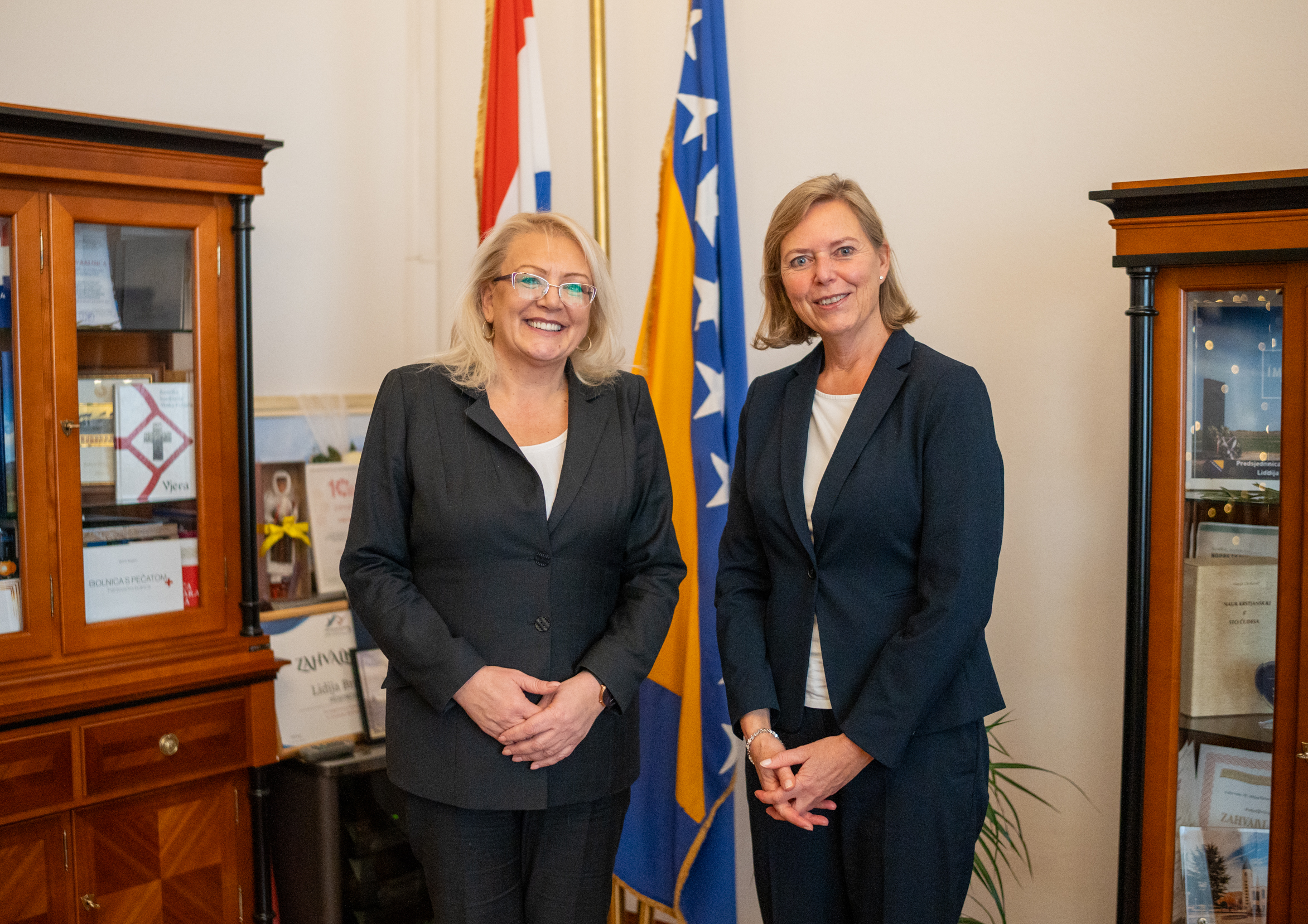 Predsjednica Federacije Bosne i Hercegovine Lidija Bradara danas je u svom uredu ugostila veleposlanicu Kraljevine Norveške u BiH Kathrine Biering. Sastanak, održan u prijateljskom i konstruktivnom ozračju, bio je posvećen razmjeni mišljenja o ključnim političkim i društvenim izazovima Federacije BiH te mogućnostima jačanja suradnje Bosne i Hercegovine i Norveške.