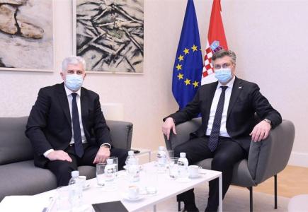 Predsjedatelj Doma naroda PS BiH i predsjednik HDZ-a BIH dr. Dragan Čović i predsjednik Vlade RH Andrej Plenković održali su danas sastanak u Banskim dvorima u Zagrebu.