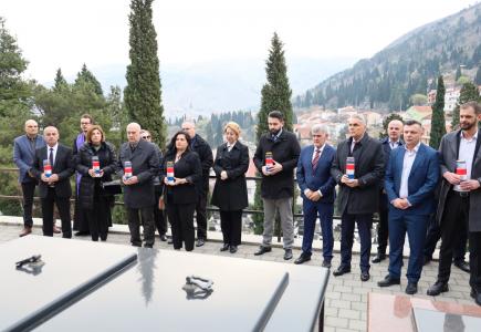U povodu 23. godišnjice atentata i ubojstva zamjenika ministra Federalnog ministarstva unutarnjih poslova Joze Leutara, jutros su položeni vijenci i svijeće na njegovorm grobu u groblju Masline u Mostaru.