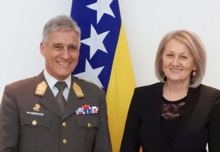 Predsjedateljica Vijeća ministara BiH Borjana Krišto razgovarala je u Sarajevu sa zapovjednikom EUFOR-a u BiH general-bojnikom Helmutom Habermayerom o suradnji institucija BiH i EUFOR-a u idućem razdoblju.