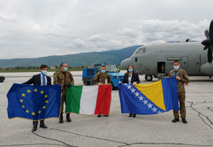 U Međunarodnoj zračnoj luci u Sarajevu veleposlanik Italije u BiH Nicola Minasi i ministrica civilnih poslova Bosne i Hercegovine Ankica Gudeljević dočekali dva talijanska vojna liječnika koji su tijekom najtežih dana za Italiju nadljudskim naporima...