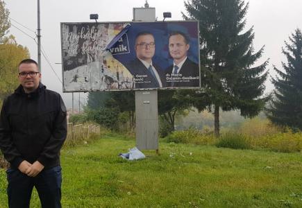 Na području Kalibunara, općina Travnik, unišen je promidžbeni jumbo plakat dr. sc. Gorana Pejakovića, kandidata za načelnika općine Travnik i dr. Maria Gučanina - Gazibarića, nositelja liste koalicije HDZ - HSS Stjepan Radić za Općinsko vijeće...