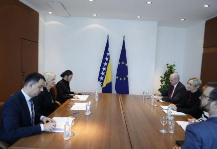 Predsjedateljica Vijeća ministara Bosne i Hercegovine Borjana Krišto razgovarala je u Sarajevu sa šefom Izaslanstva Europske unije u BiH i posebnim predstavnikom Europske unije u BiH veleposlanikom Johannom Sattlerom o Planu rasta – novom...