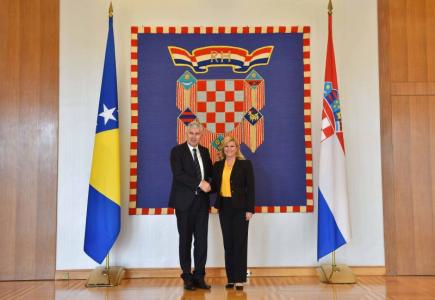 Predmet razgovora tijekom službenog posjeta bili su odnosi dvije zemlje, političke prilike u Bosni i Hercegovini i njezin euroatlantski put. U svezi izgradnje Pelješkog mosta, predsjedatelj Čović je informirao sugovornicu da, što se tiče institucija...