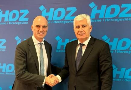 Predsjednik HDZ-a BiH i Hrvatskog narodnog sabora BiH dr. Dragan Čović danas je u Domu HDZ-a BiH u Mostaru razgovarao s državnim ministom Ujedinjenog Kraljevstva za Europu i Sjevernu Ameriku Leom Dochertyjem.
