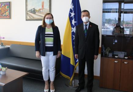 Ministrica civilnih poslova Bosne i Hercegovine Ankica Gudeljević razgovarala je u Sarajevu sa veleposlanikom Narodne Republike Kine u BiH Ji Pingom o aktualnim temama i suradnji dvije države.