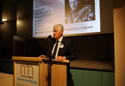 Pred brojnim visokim uzvanicima i dužnosnicima, u kinu ”Borak” u Širokom Brijegu večeras je predstavljena knjiga "Između prošlosti i budućnosti" umirovljenog generala Krešimira Ćosića.